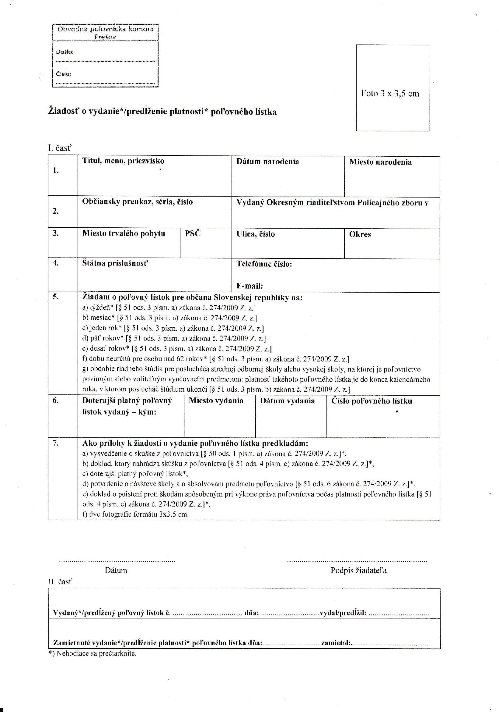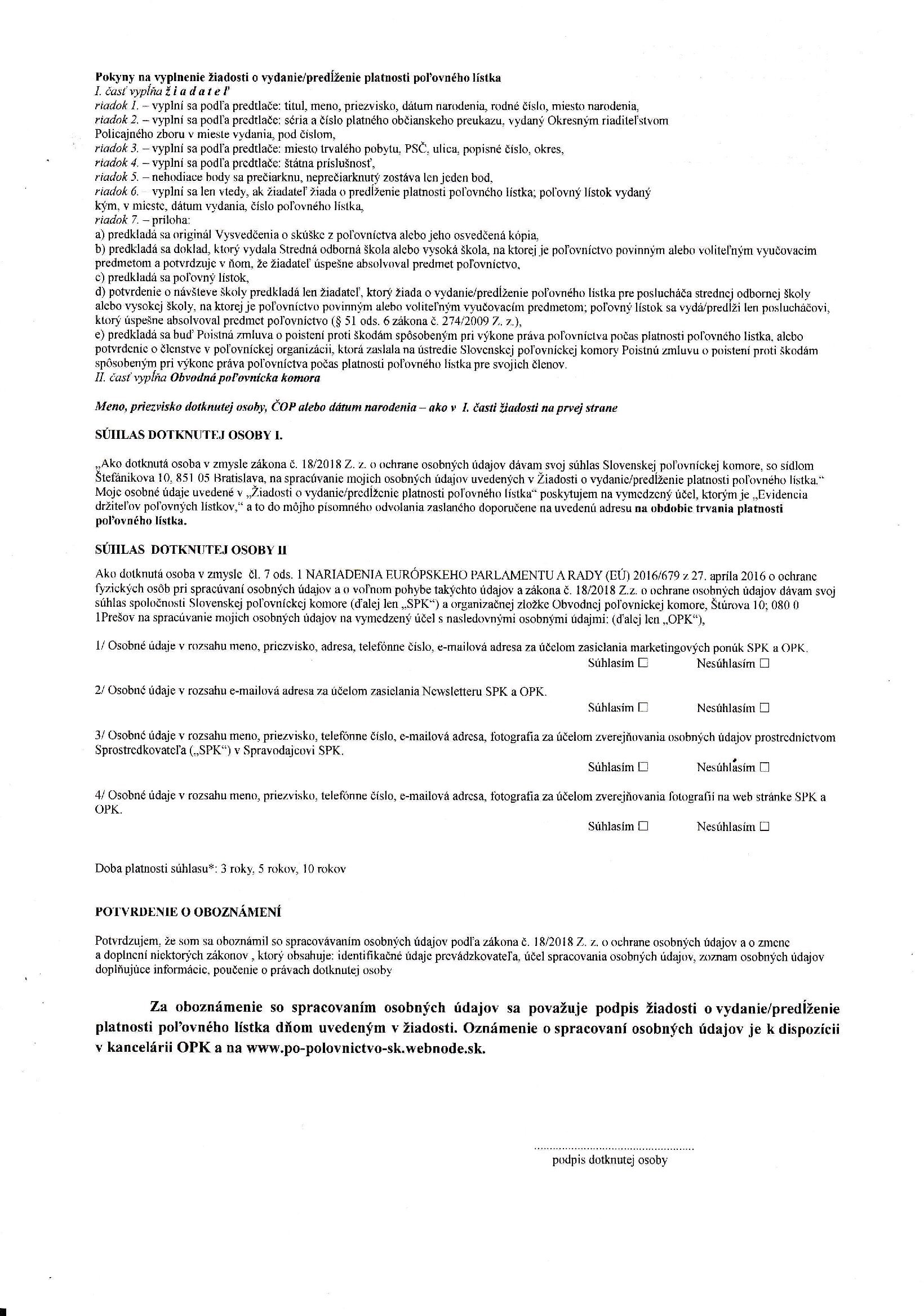 1. Vypísanú a podpísanú žiadosť,